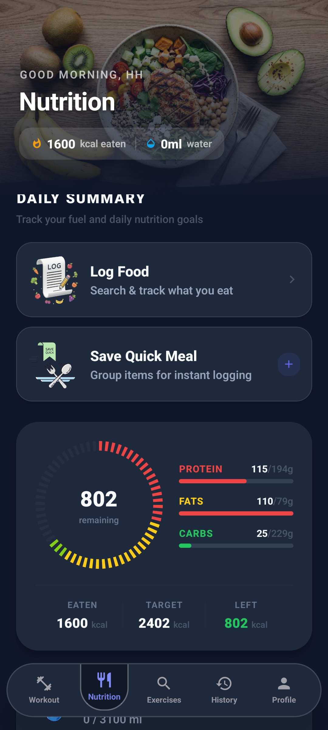 Quick Meals: Save your favorite daily meals and log them with one tap, keeping your diet perfectly on track without the hassle.