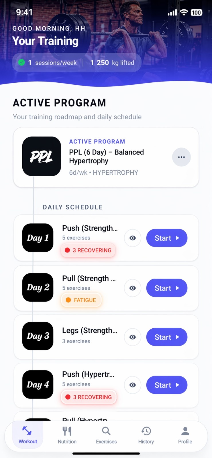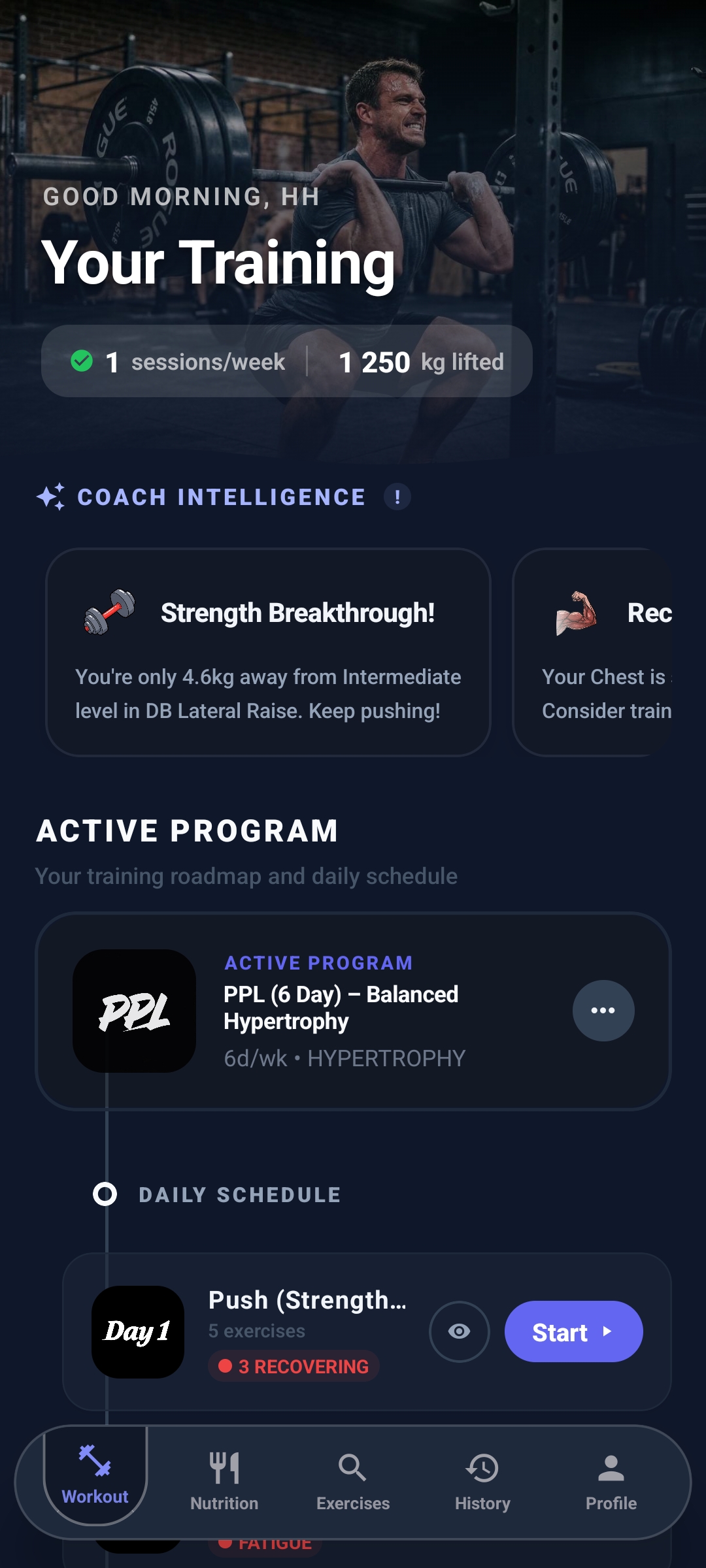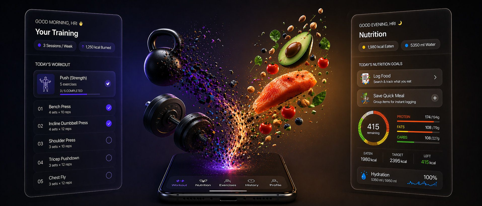Track your workouts, log your meals with AI, and see your progress in one easy-to-use fitness app.