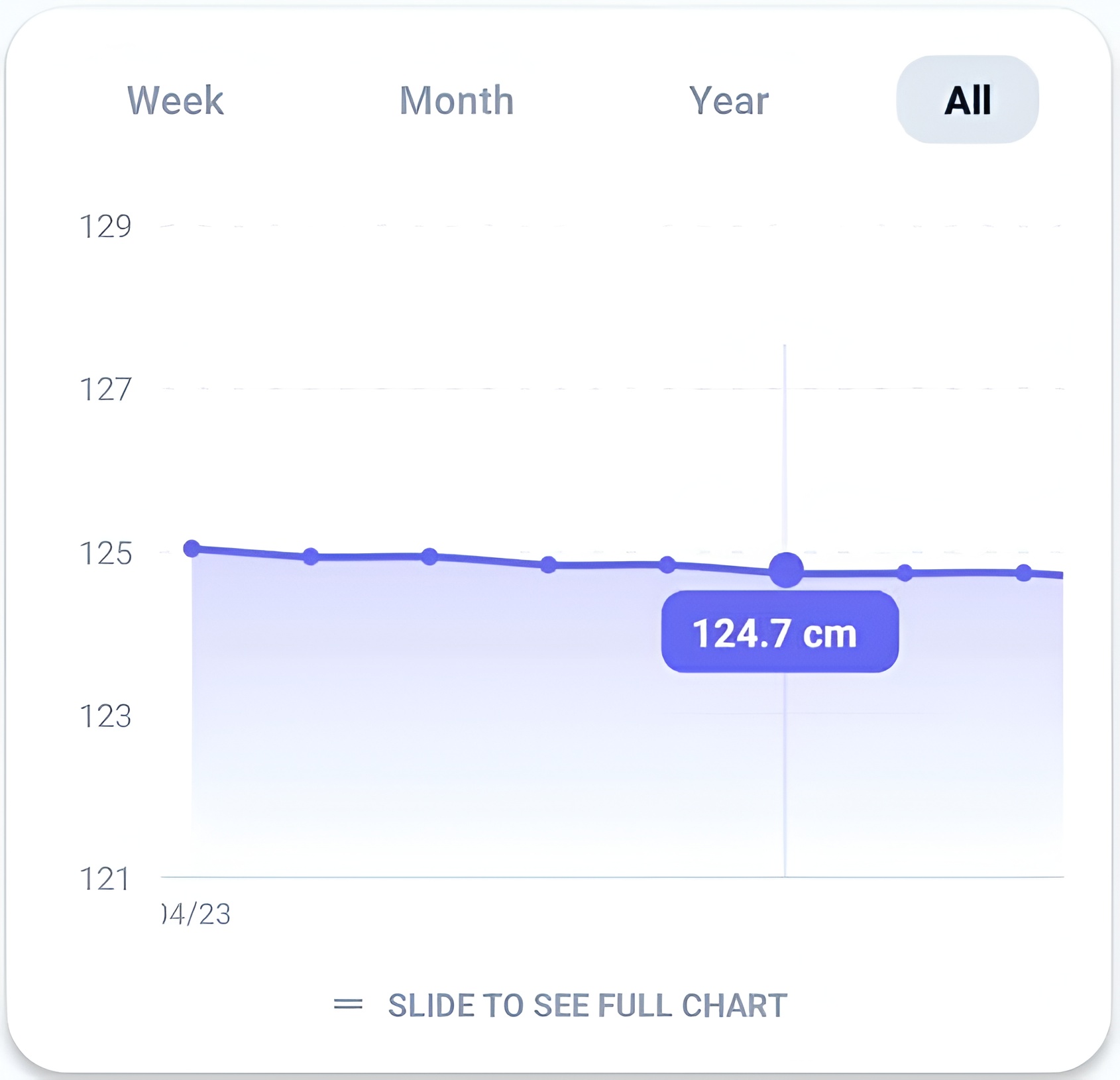 Keep an eye on your weight and body measurements over time. Watch your progress graph climb closer to your goals, week by week.