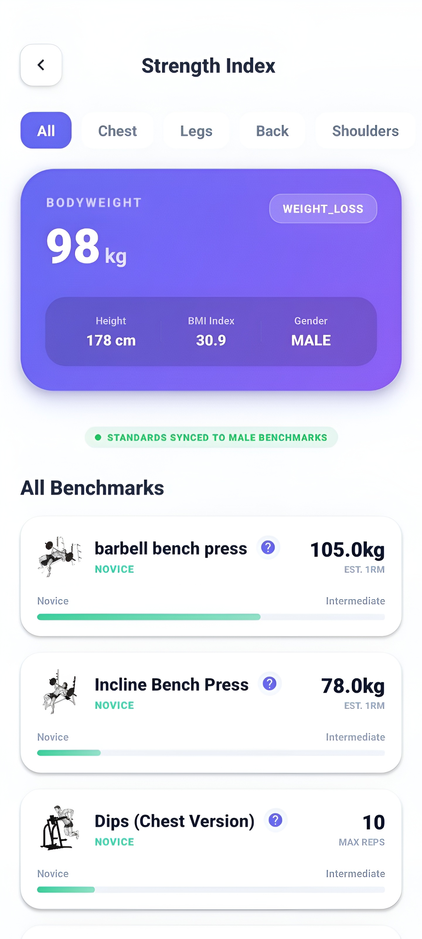 PRs are logged automatically after doing any workout exercise. You can check the Strength Index page to seamlessly monitor your progress on famous compound lifts.